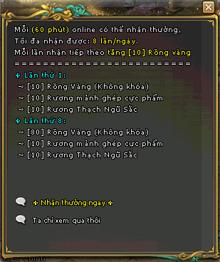 • Mỗi ngày nhân vật có thể nhận 8 lần/ngày